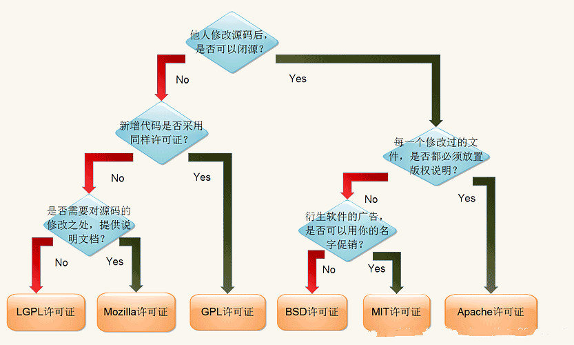 今天看到这幅图,对开源license总结得很好,借用一下。