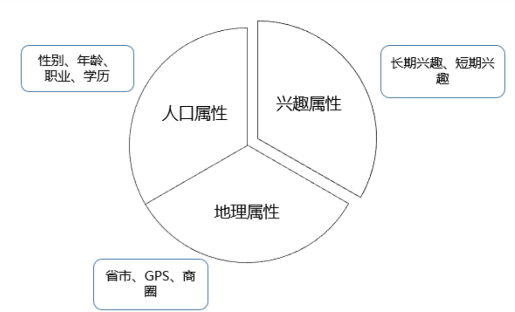 如果仅仅是这样,我们至少还能面对各种领域信息,然后由我们自己来做人工选择。可是AI来了,帮我们过滤了其它领域信息。典型AI算法包括用户画像和智能推荐。用户画像是指在大数据时代,app开发商通过对用户浏览新闻、购物、参与社交团体、讨论组、话题等产生的数字信息进行清洗、聚类、分析,从而将数据抽象成标签,利用这些标签将用户形象具体化,从而为用户提供有针对性的服务。用户画像的核心工作就是给用户打标签,标签通常是人为规定的高度精炼的特征标识,如年龄、性别、地域、兴趣等。这些标签集合就能抽象出一个用户的信息全貌。典型用户画像包括以下属性: