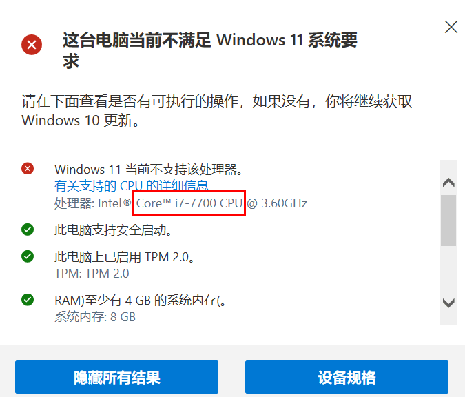 而我的Win10版本是21H1,CPU是i7-7700,为什么不能升级???